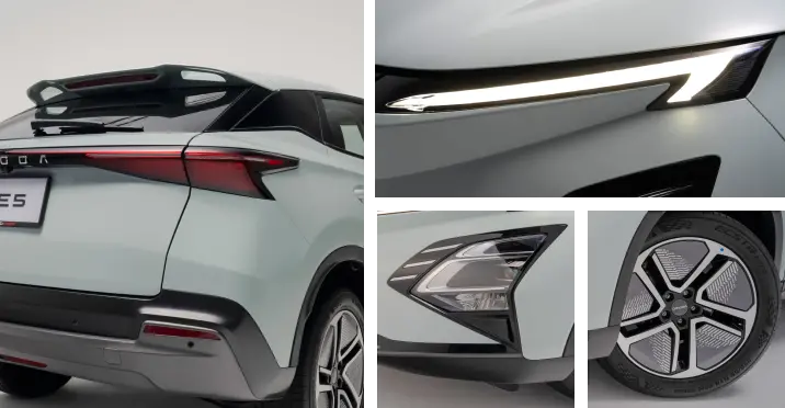 Az OMODA 5 EV modern eleganciával megalkotott külseje több, mint egy jövőkép; ez egy merész kijelentés arról, hogy az idők változnak. A jellegzetes első hűtőrácstól a zökkenőmentesen integrált világításig minden részletet aprólékosan megterveztünk, hogy magával ragadjon és figyelmet keltsen.