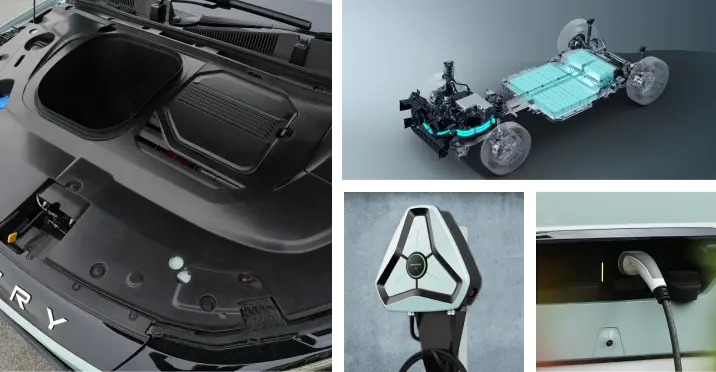 A legújabb technológiát alkalmazva az OMODA 5 EV egy 61 kWh kapacitású akkumulátorral van felszerelve, amely a nagyobb biztonság érdekében pengecellás kialakítással rendelkezik. Az osztályelső akkumulátor-menedzsmentnek köszönhetően az akkumulátor 99%-a mindig használható. Az alacsony légellenállási együtthatóval kombinálva az OMODA 5 EV mindössze 15,5 kWh/100km-t fogyaszt. A fejlett motor, amelynek lapos huzaltekercseléssel ellátott magja javítja a hatékonyságot, miközben csökkenti a zajszintet.